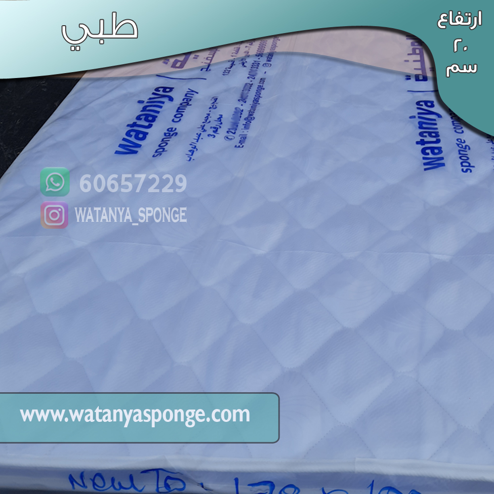 مرتبه طبيه من صناعة شركة الوطنيه للاسفنج والمراتب الطبيه الكويتيه هي من الاسفنج المظغوط تتتميز بقوة التحمل والجوده والكفاله عليها طبقة ديباج طري ليعطيها مرونه قليله لايوجد بداخلها سبرنغ هي مصنوعه من الاسفنج المظغوط حيث تحتوي على طبقة اسفنج وطبقة ديباج