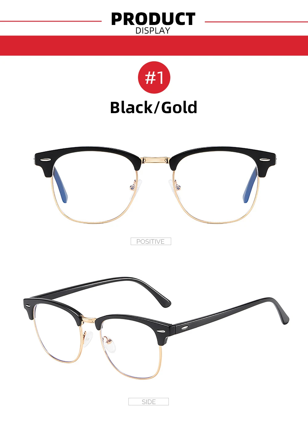 1 Black Gold , 2 Black Silver , 3 Transparent Gold , 4 Transparent Silver , 1 Black Black |